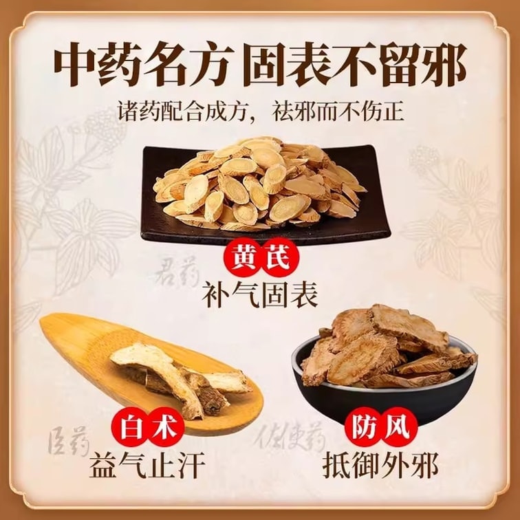 | Efficacy | Supplementing qi and strengthening exterior to prevent perspiration |
