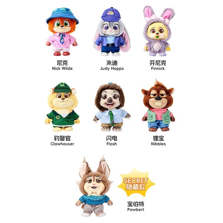 Disney's Zootopia City Residents Series Vinyl plush toy Blind Box, Brand new box of 6 pieces [Probability hidden, no repetition]