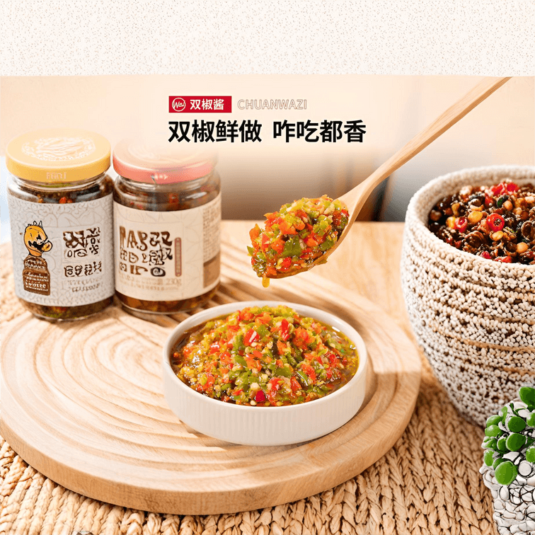 Chuanwazi Double Chili Sauce | 230g | Spicy & Savory Blend for Rice & Noodles