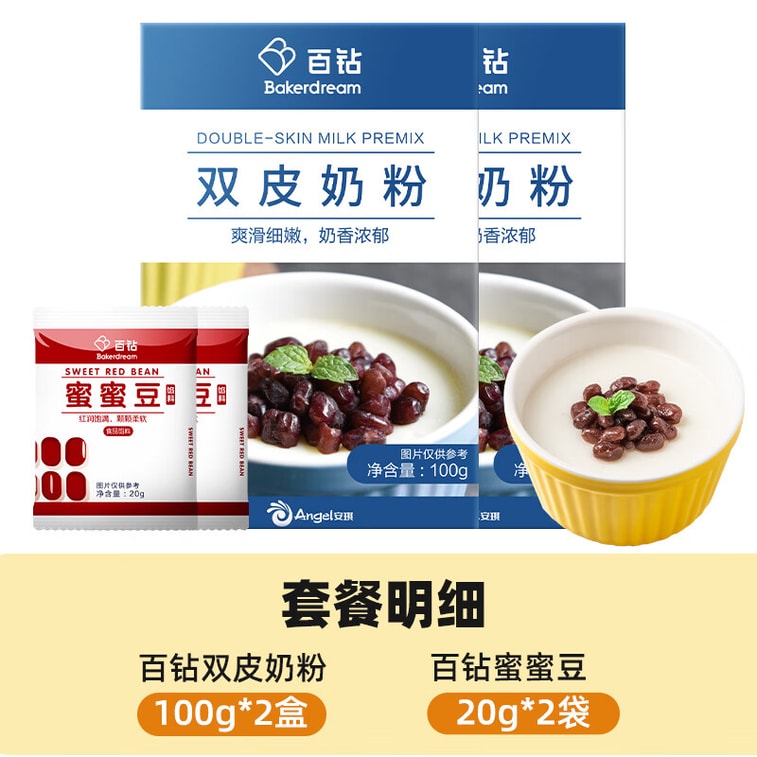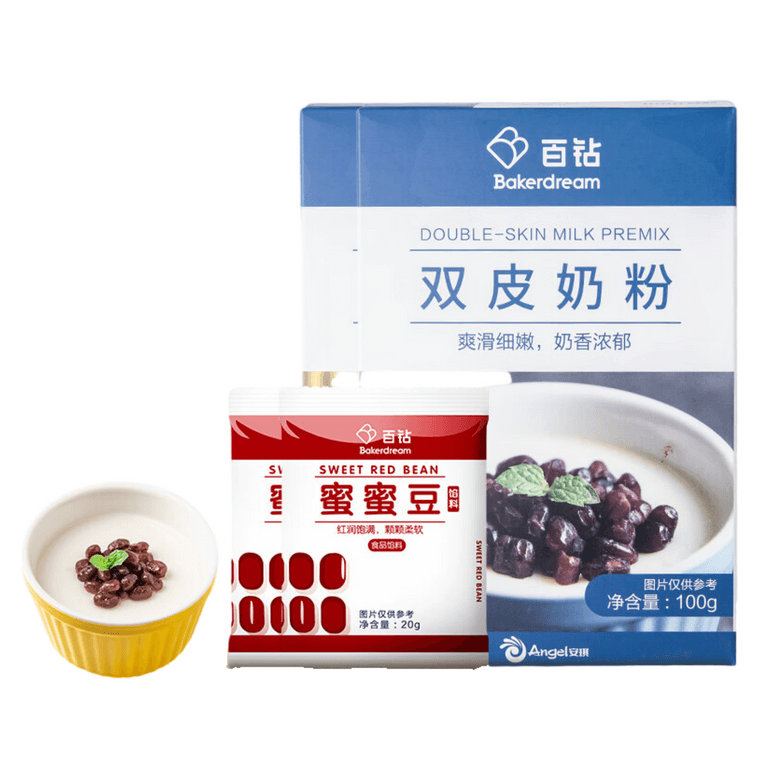 Double-Skin Milk Pudding Mix Combo: 100g x 2 Bags + Premade Sweetened Red Beans 20g x 2 Packs