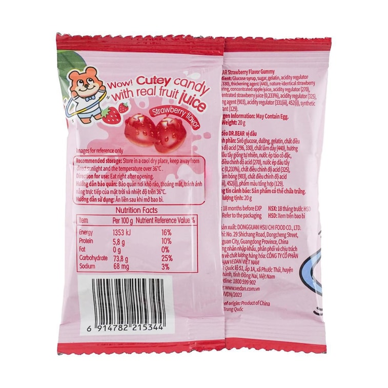 Dr. Bear Strawberry Flavor Soft Jelly Gummy Candy 0.7 oz*5【5 Packs】