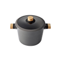 BOSQUE Nonstick Stock Pot with Glass Lid Medium Saucepan with Two Oakwood Handles 24cm