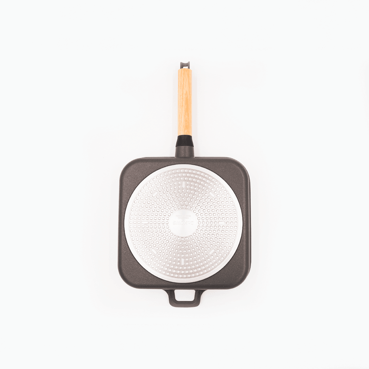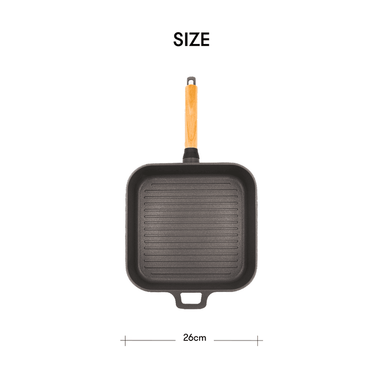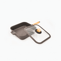 BOSQUE Nonstick Square Grill Pan with Lid and Oakwood Handle 26cm