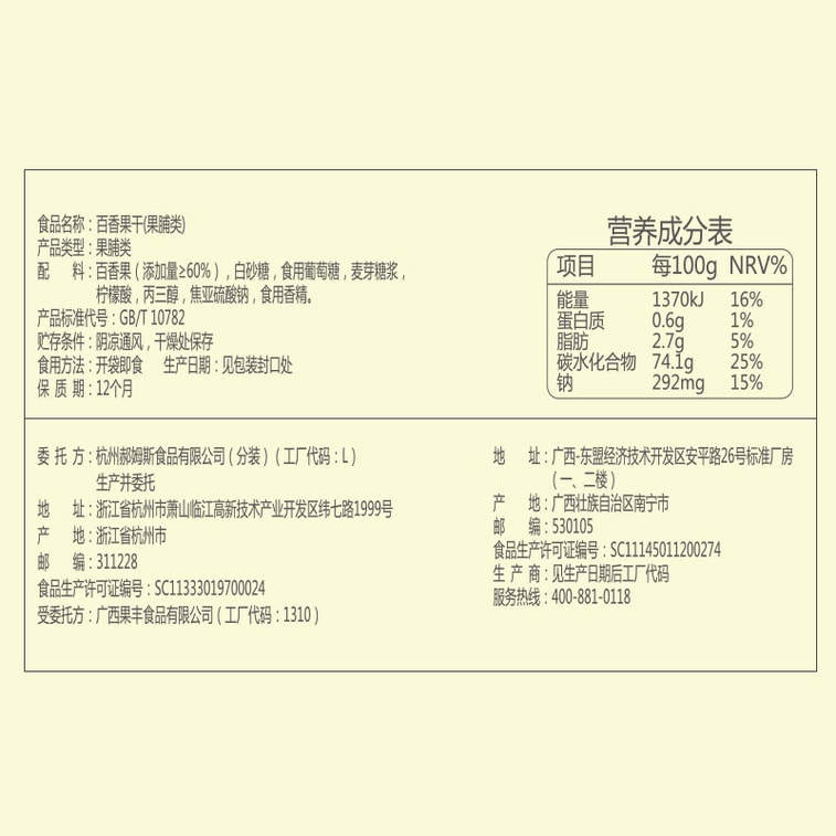 Dried passion fruit preserved fruit candied fruit dried office snacks 100g * 1 bag