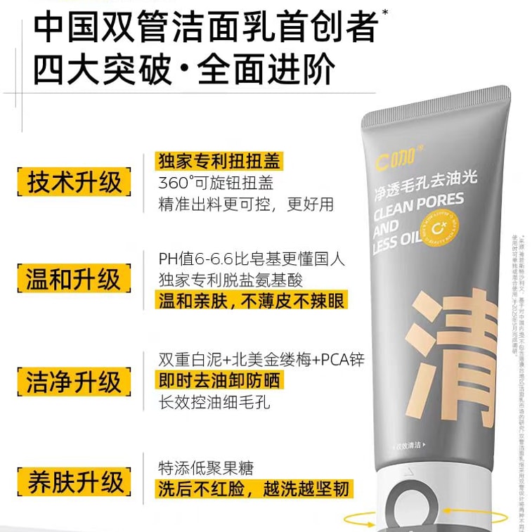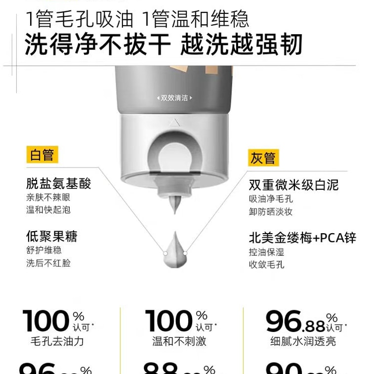 Dual-Tube Amino Acid Cleanser for Oil Control, 100g