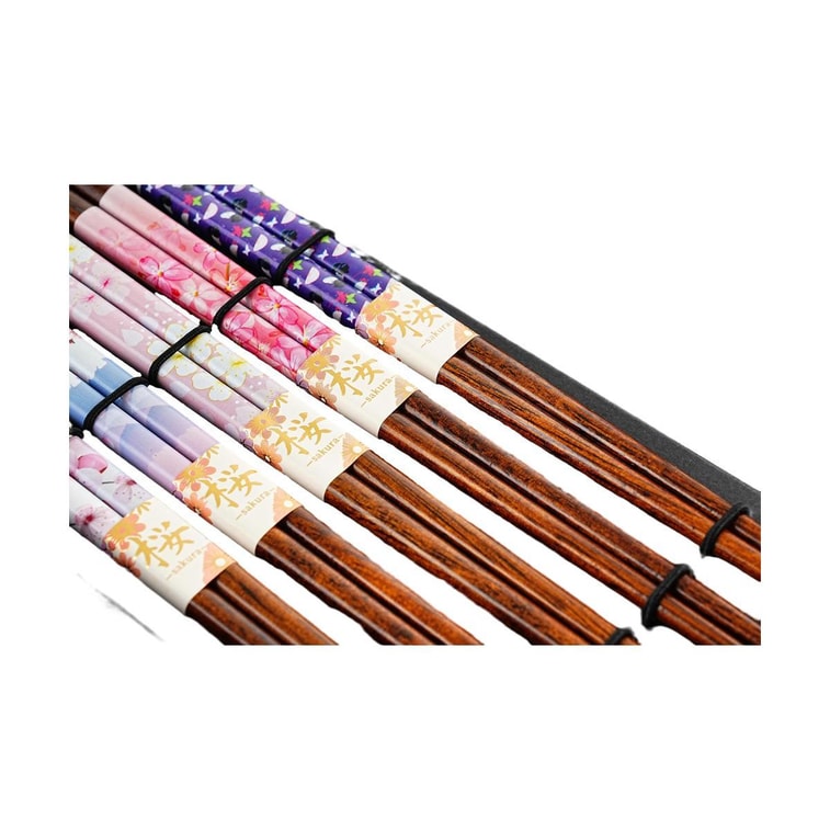 Bamboo chopsticks paired with ceramic cherry blossom chopstick holder, 22.5CM *5 pairs