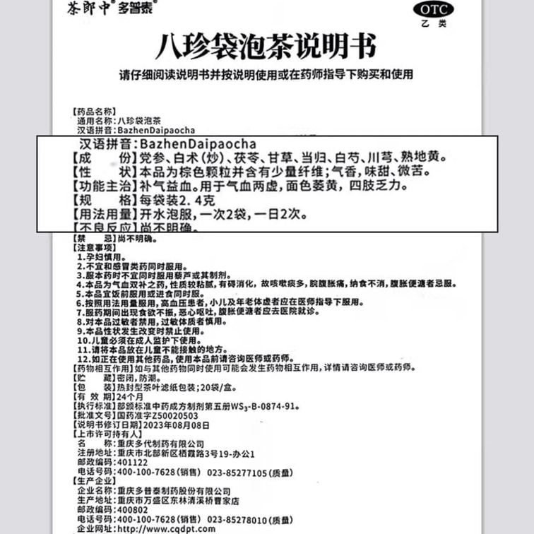 Eight Treasures Bags Tea For Women To replenish Qi And Nourish Blood 2.4g*20Bags/Box