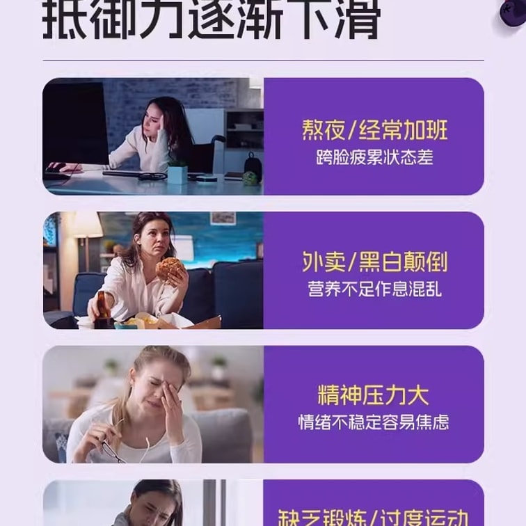 | Concerns | Frequent stay up late to work overtime body overdraft to resist weak easy recruitment season easy sneezing constantly |