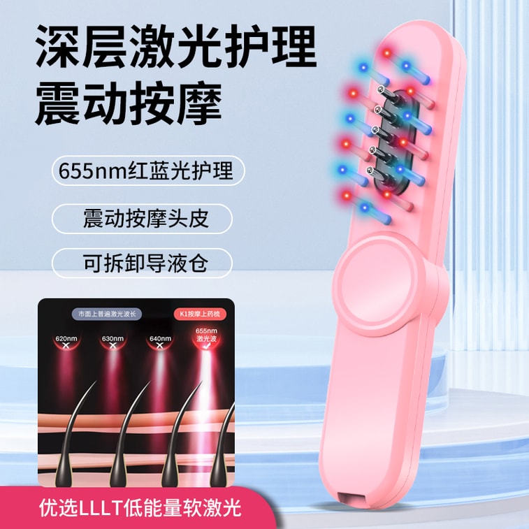 Electric Scalp Massager with Red Blue Light pink 1Unit