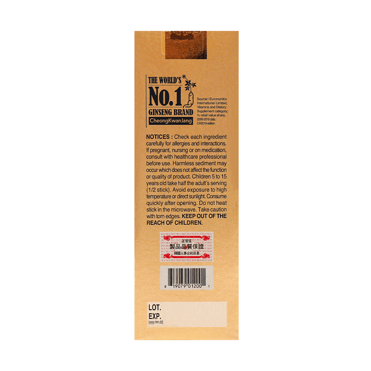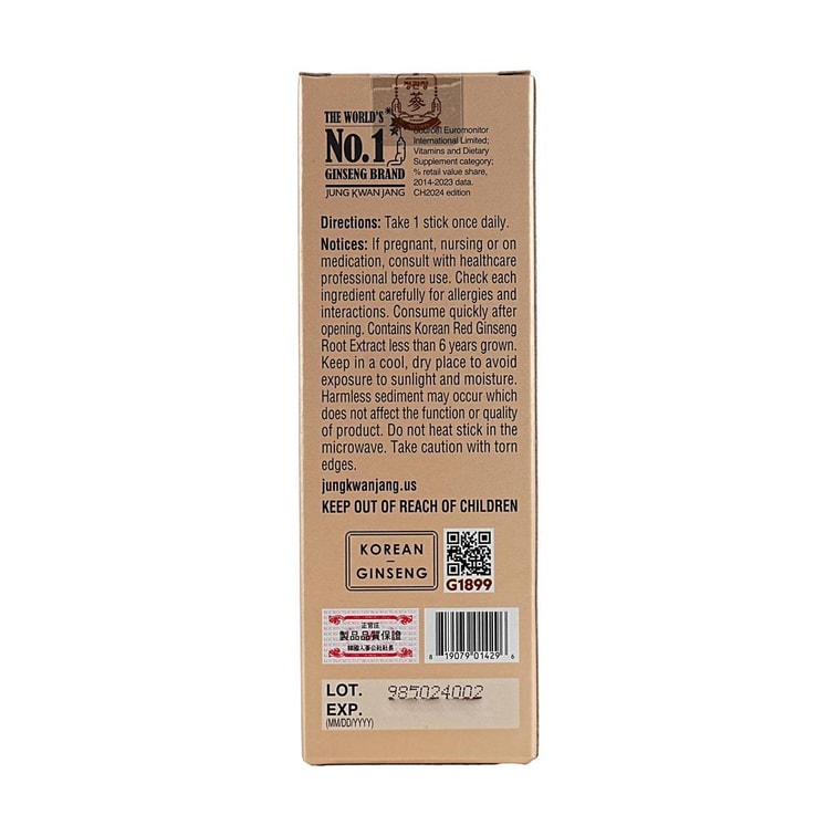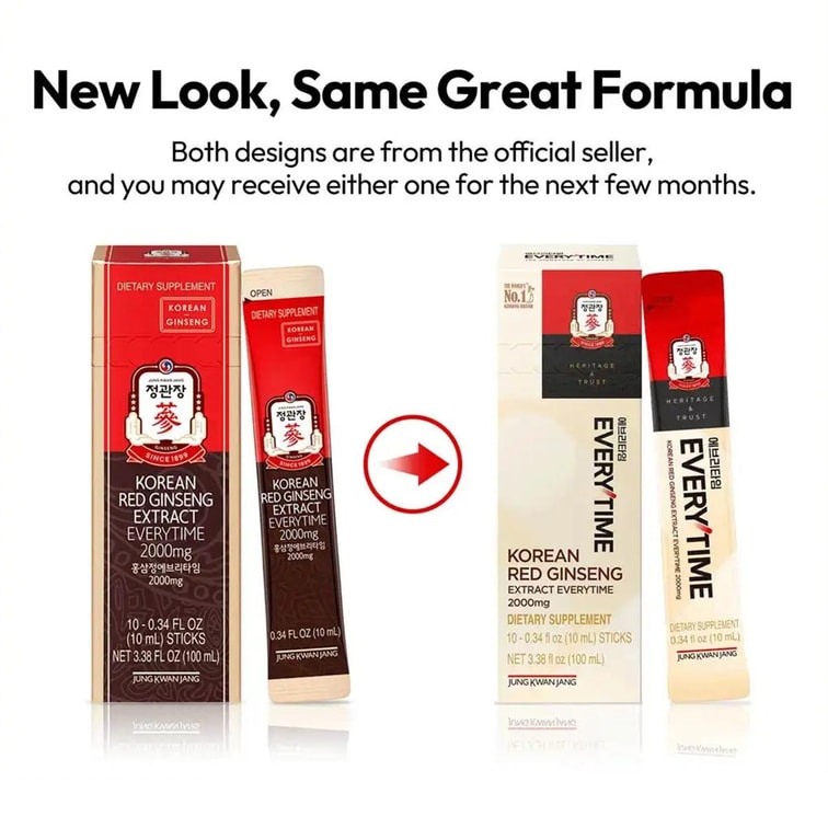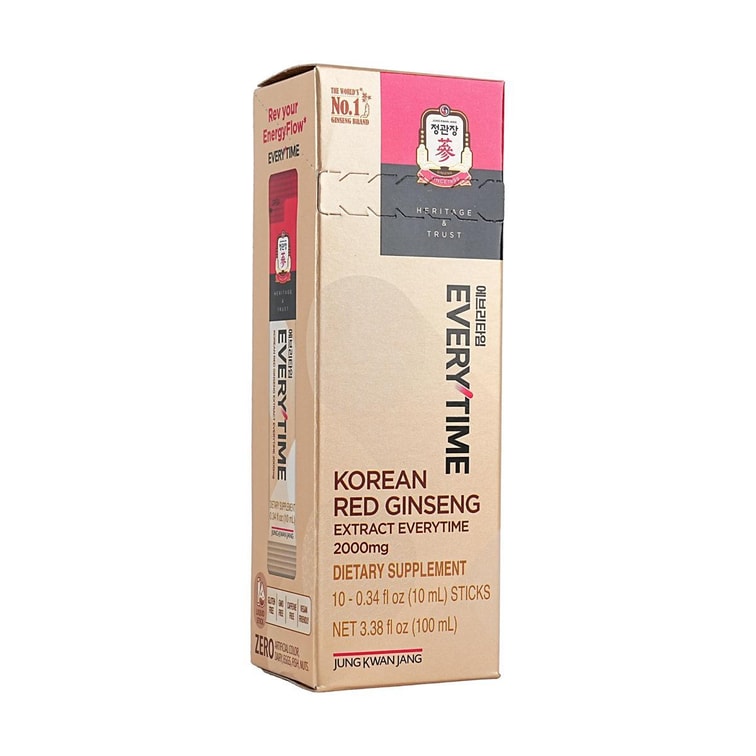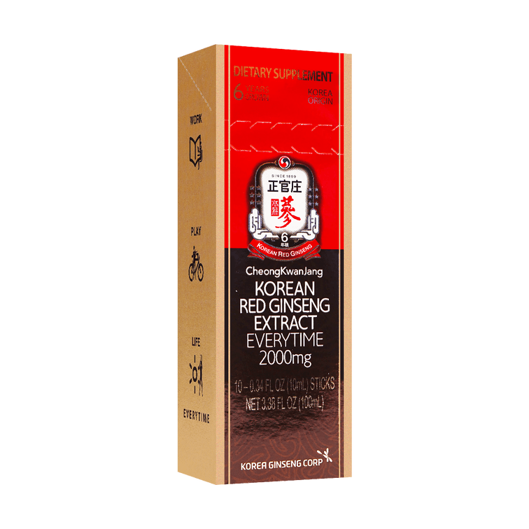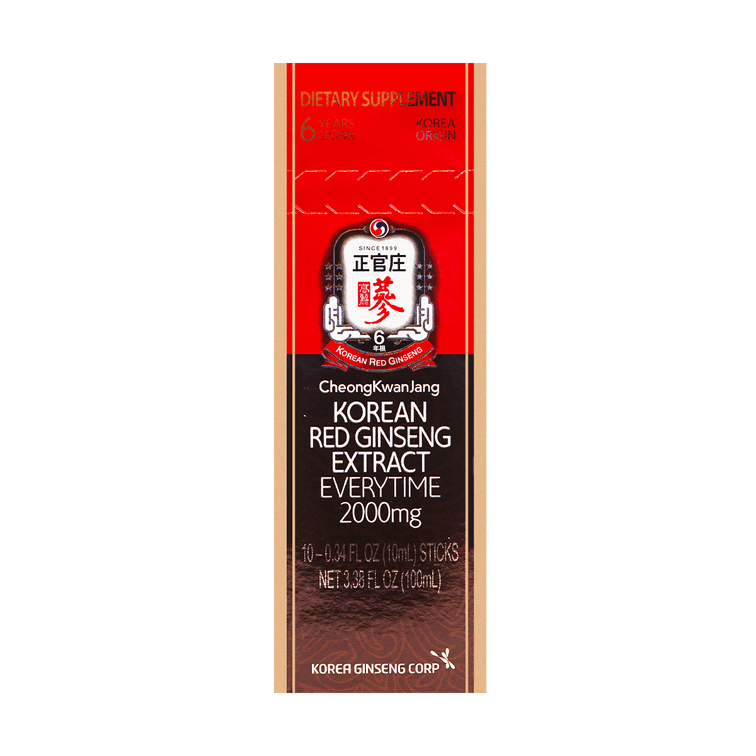 EVERYTIME Korean Red Ginseng Extract 2000mg Dietary Supplement, 10sticks/box - 10Kcal/stick