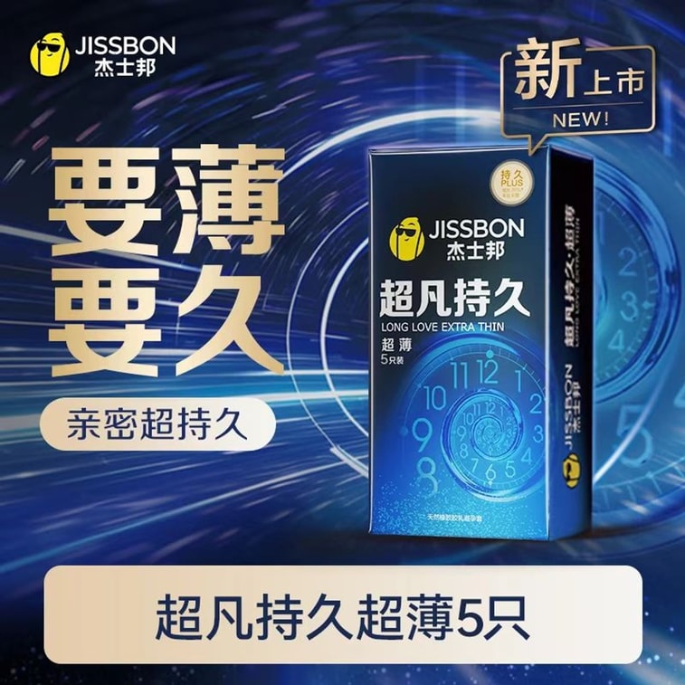 Exceptionally long-lasting, ultra-thin and delayed-release condom, 5 pieces per pack