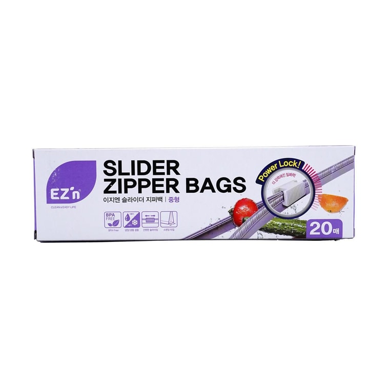Slide Lock Zipper Bags, Food-Grade Seal, Moisture-Proof & Leak-Proof, Reusable, Size M