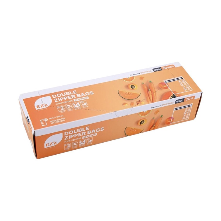Standard Double Zipper Bags, Food-Contact Grade, Double Seal, Fresh-Keeping & Leak-Proof, Size L