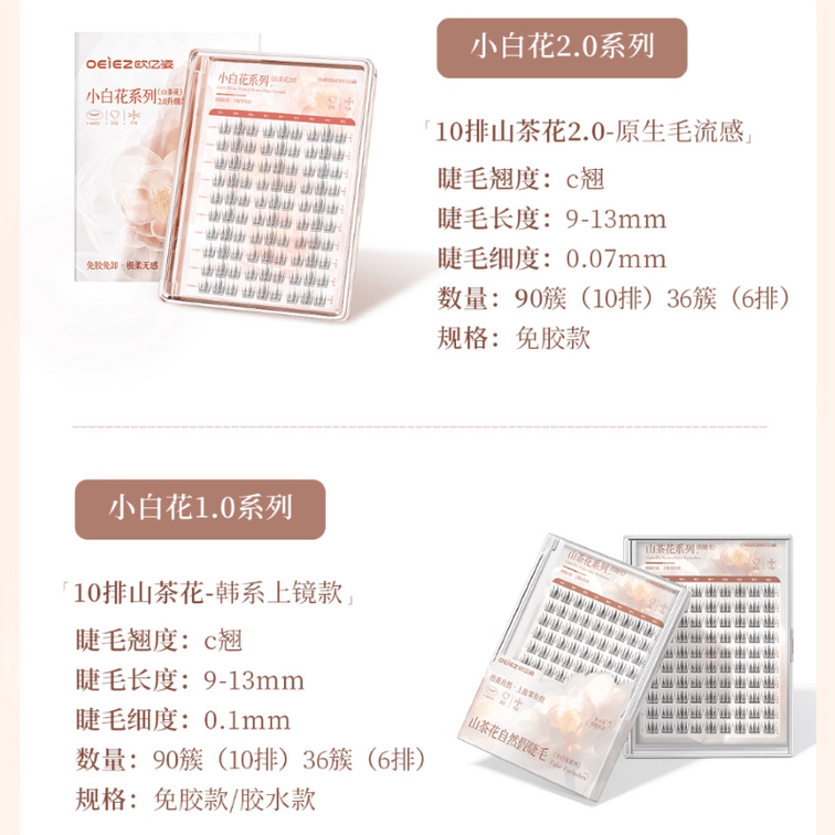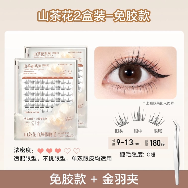False Eyelashes Camellia 1.0 Glue-Free Natural-Looking Sunflower Style 2025 New Arrival Girl Group Glue-On Eyelashes 2-Box Set
