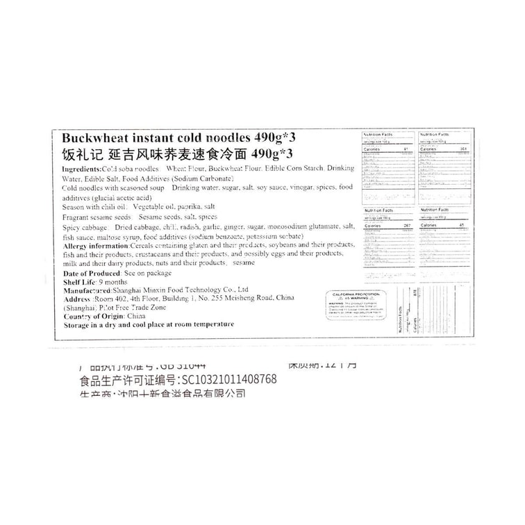 Naengmyeon Yanji-Style Cold Noodles ,3 Bags ,17.28 oz