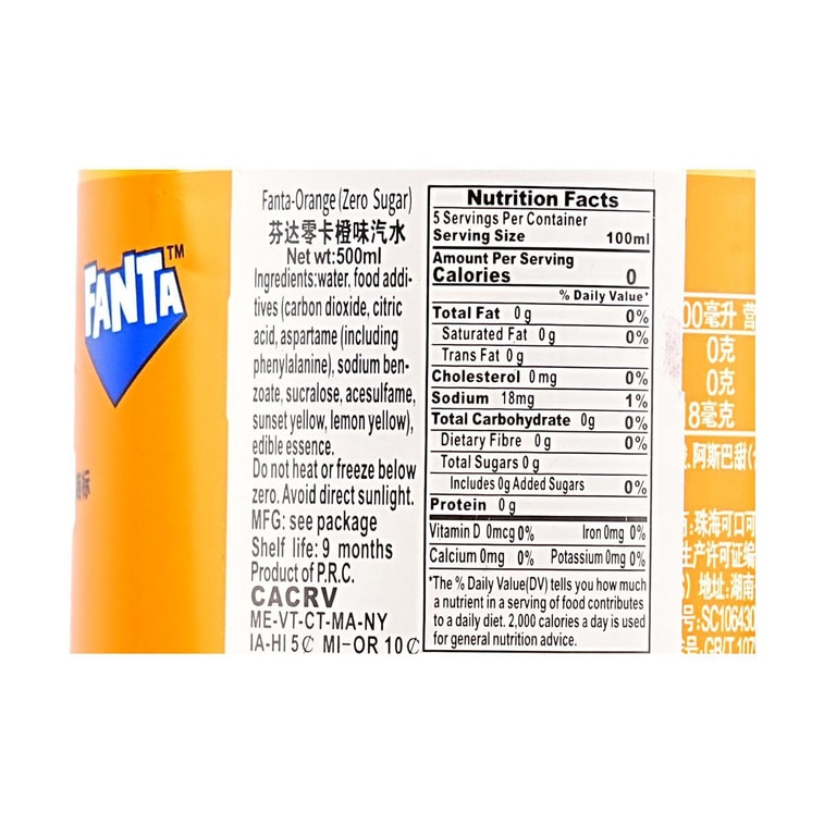 Fanta Orange Flavor Drinks 0 Sugar, 16.9 fl oz