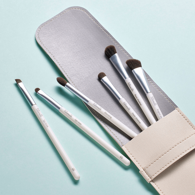 FILLIMILLI Eye Makeup Brush Kit, 6pcs - Professional Eye/Eyebrow/Contour Brushes | Pouch Included​ | Yami