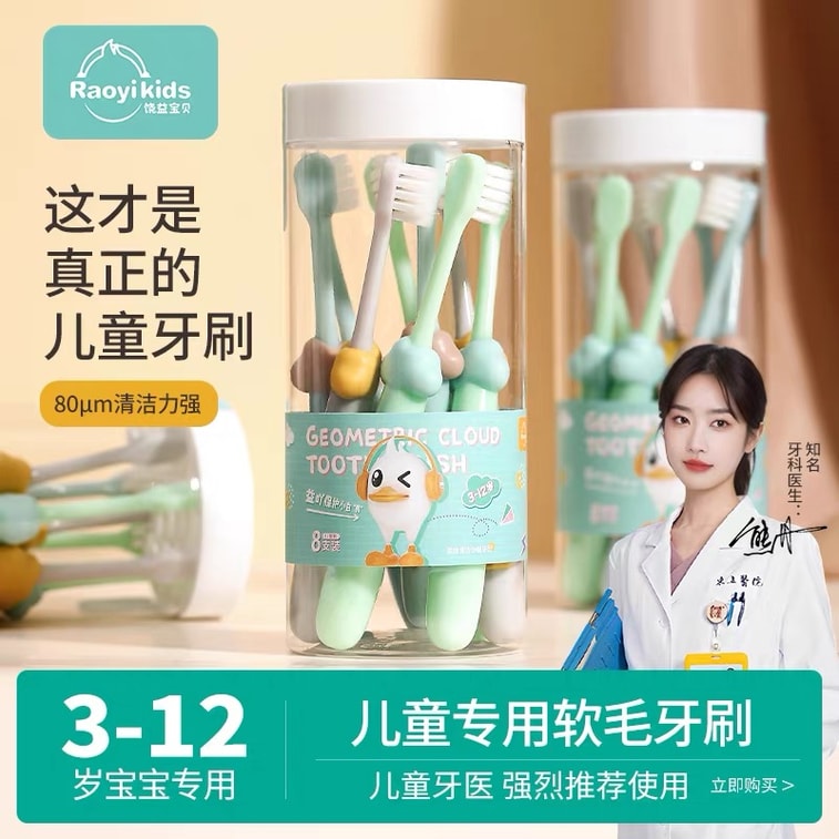 Designed for Ages 3-12: Specially designed for children's oral development, the brush head is the perfect size to clean molars effectively without hurting the throat, suitable for children of different ages.