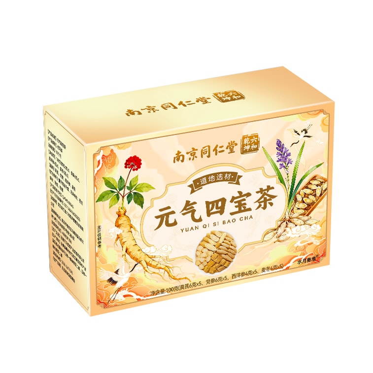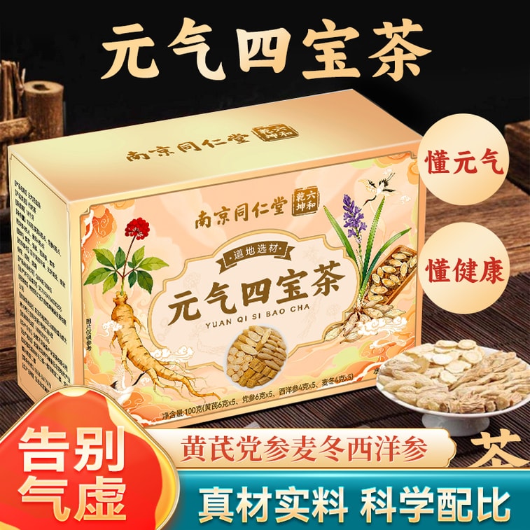 Nanjing Tongrentang Four-Treasure Qi-Blood Tea 100g – Premium Herbs Separately Packed: Astragalus, Ophiopogon, American Ginseng, Codonopsis, Whole Ingredients, Balanced Blend for Vitality | Yami