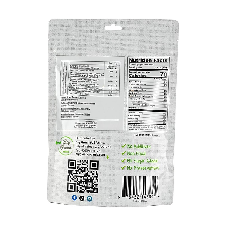 BIG GREEN Freeze Dried Banana Slices, 2.11 oz【No Sugar No Additives】 | Yami
