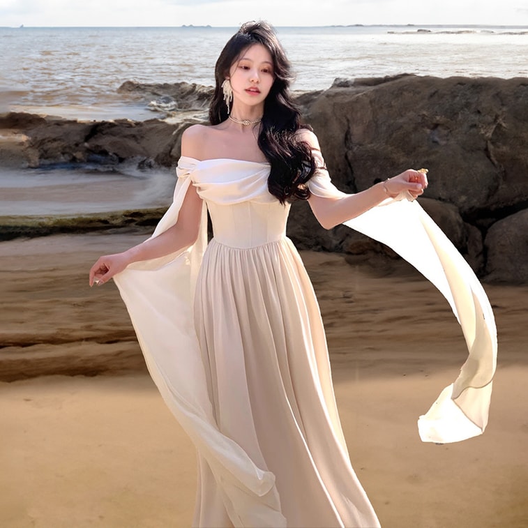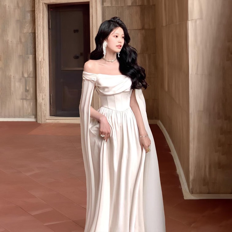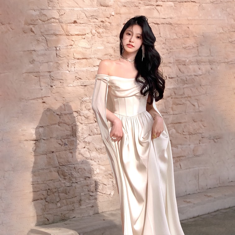 French Party White Gown High End Design Niche Strapless Dress Birthday Annual Dinner Elegant Dress Off White M | Yami
