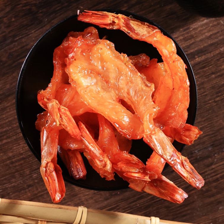 Fresh roasted open back shrimp dry reduced sugar low fat roasted shrimp high protein seafood snack 48g