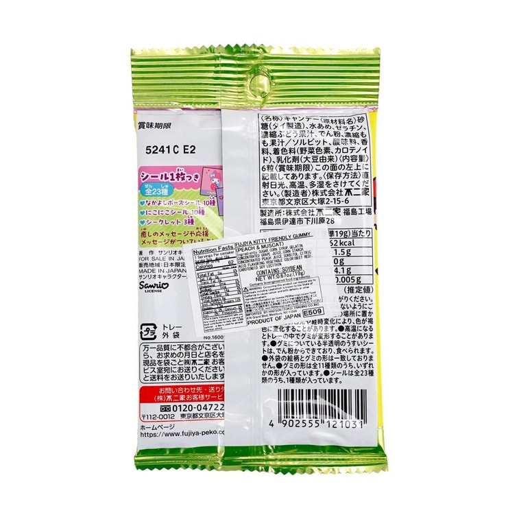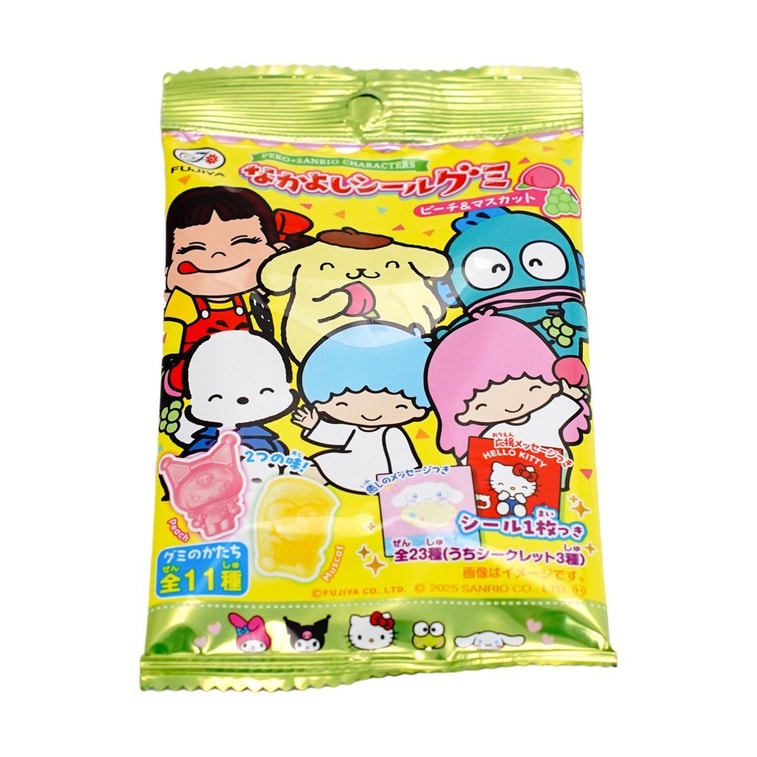 Sanrio Collaboration Friendly Gummy Candy Peach & Muscat Flavor 0.67oz【Includes 1 Character Sticker】