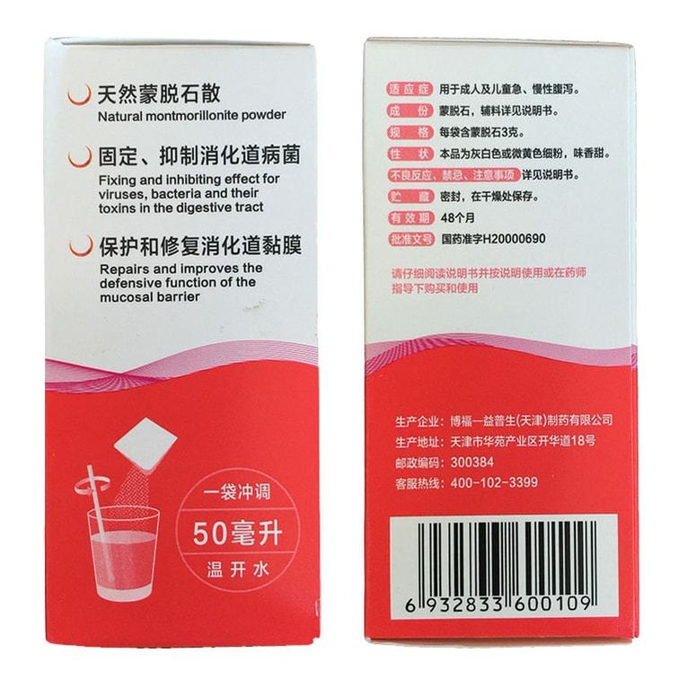 Montmorillonite dispersion for acute and chronic diarrhea diarrhea Random two boxes