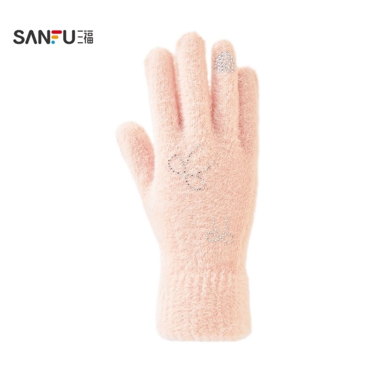 Fun Knotted Five-Finger Gloves Cute Outdoor Warm Gloves Cartoon Knotted Pink One Size Fits All, Pair