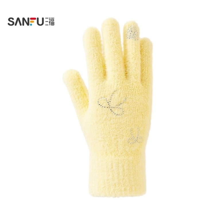 Fun Knotted Five-Finger Gloves Cute Outdoor Warm Gloves Cartoon Yellow Knots One Size Fits All, Pair