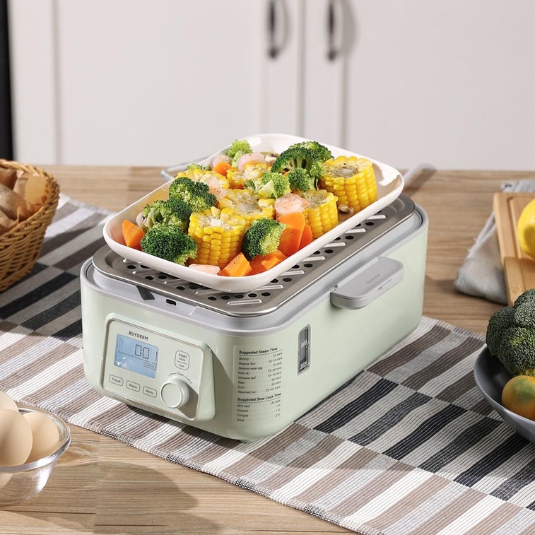 BUYDEEM 【$40 off with coupon】Electric Food Steamer Light Green 5.3QT/5L Stew Pots Not Included Multi - functional | Yami