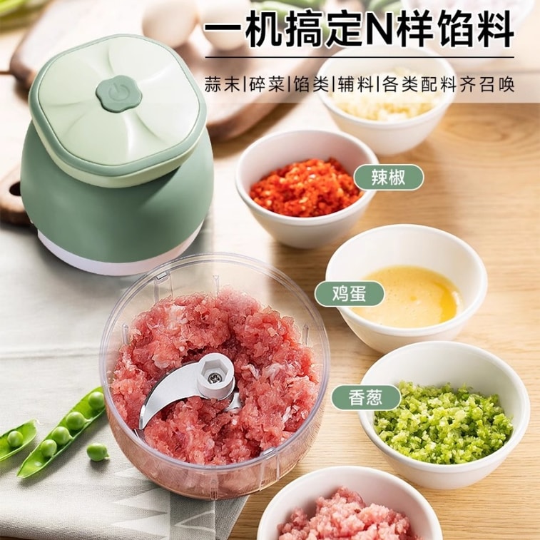 Garlic Grinder Home Mini Electric Garlic Chopper Puree Machine Wasabi Green-130ml 1pc | Yami