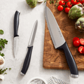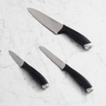 - Set includes 3" paring knife, 5" serrated utility knife, and 8"' chef's knife.