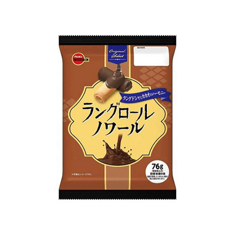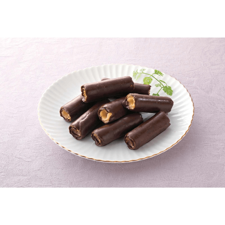 Crispy cat tongue cookies are rolled up and coated with a light layer of chocolate cream. Individually wrapped. Approximately 9 cookies per pack.