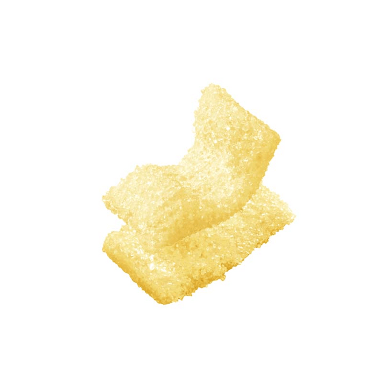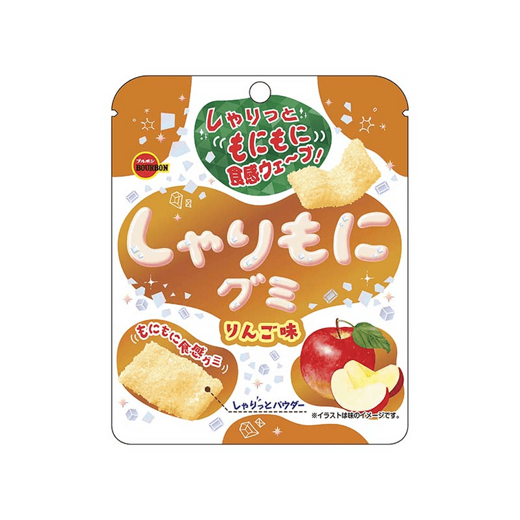 This is an apple-flavored gummy candy with sweet and sour powder and an interesting texture.