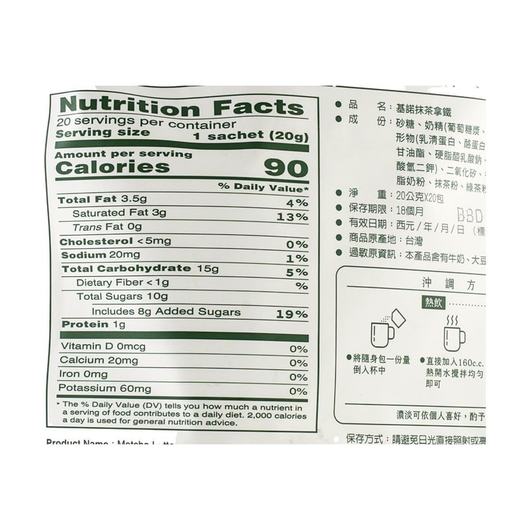 | Flavor | Green Tea Latte |