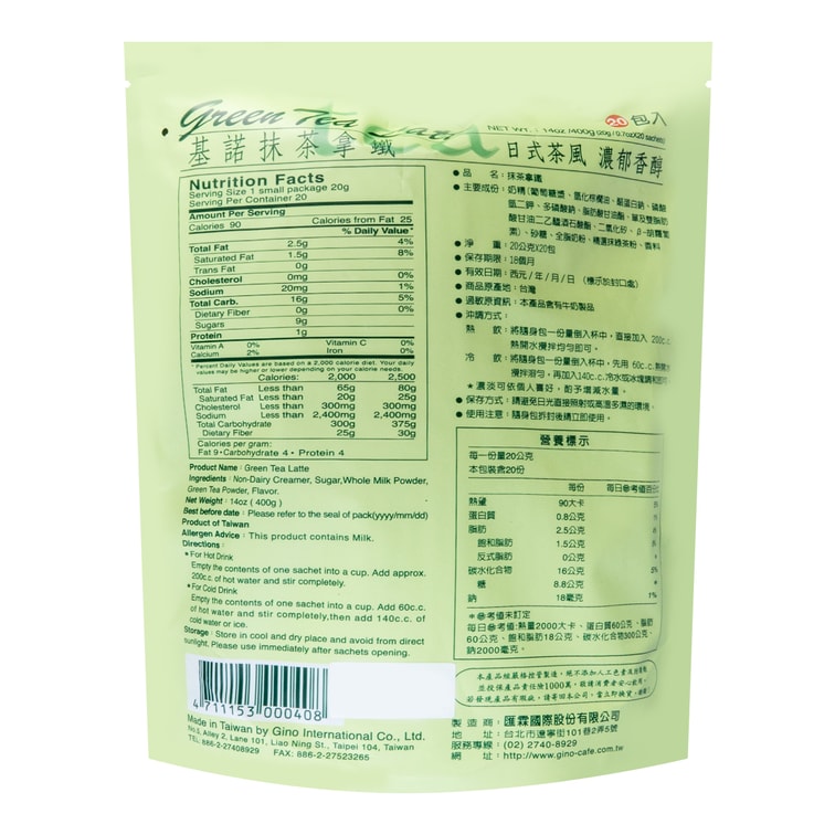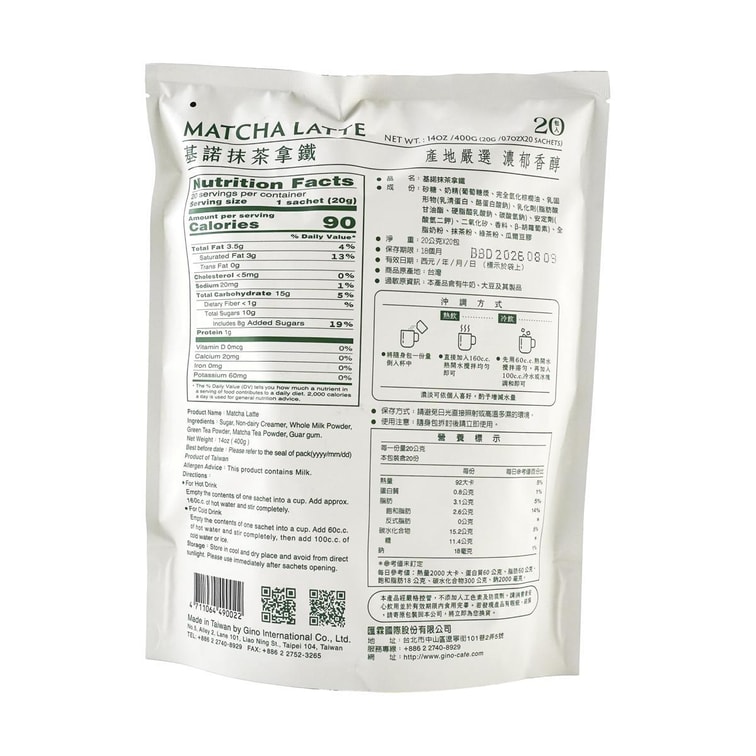 Green Tea Matcha Latte 20 Bags 14.1 oz