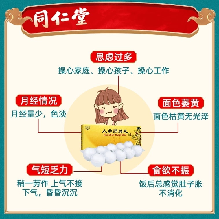 Ginseng Spleen Pills Nourish Qi Nourish Blood Anemia Palpitation And Insomnia 9g*10Pills*3Boxes