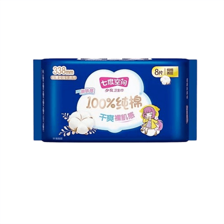 Girls' Pure Cotton Ultra-Thin Hygienic Overnight Absorbent Pad 338mm * 8 Sheets/Package