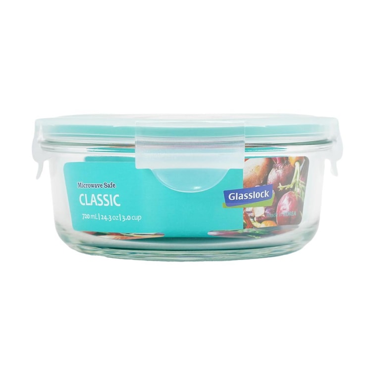 Round Glass Food Container 720ml Airtight Microwave Fridge Safe