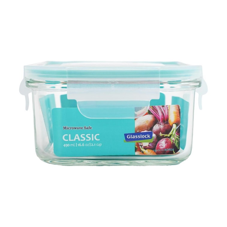 Square Glass Food Container 490ml Airtight Microwave Fridge Safe