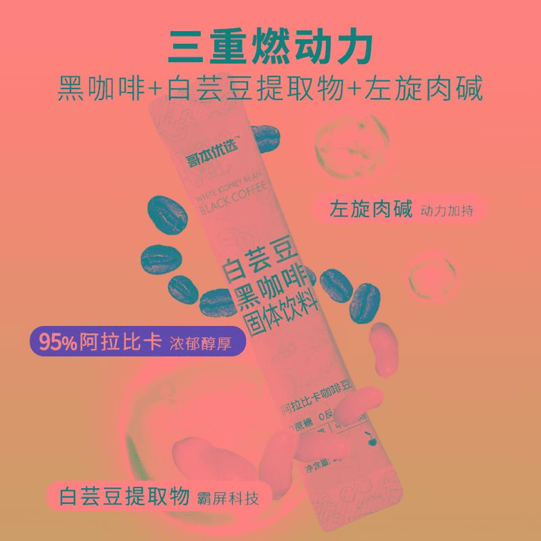 Goben Preferred White Yundou Black Coffee Powder Fat 0 Fitness Refreshing Beauty Coffee 20 Strips, 20g * 2 Boxes