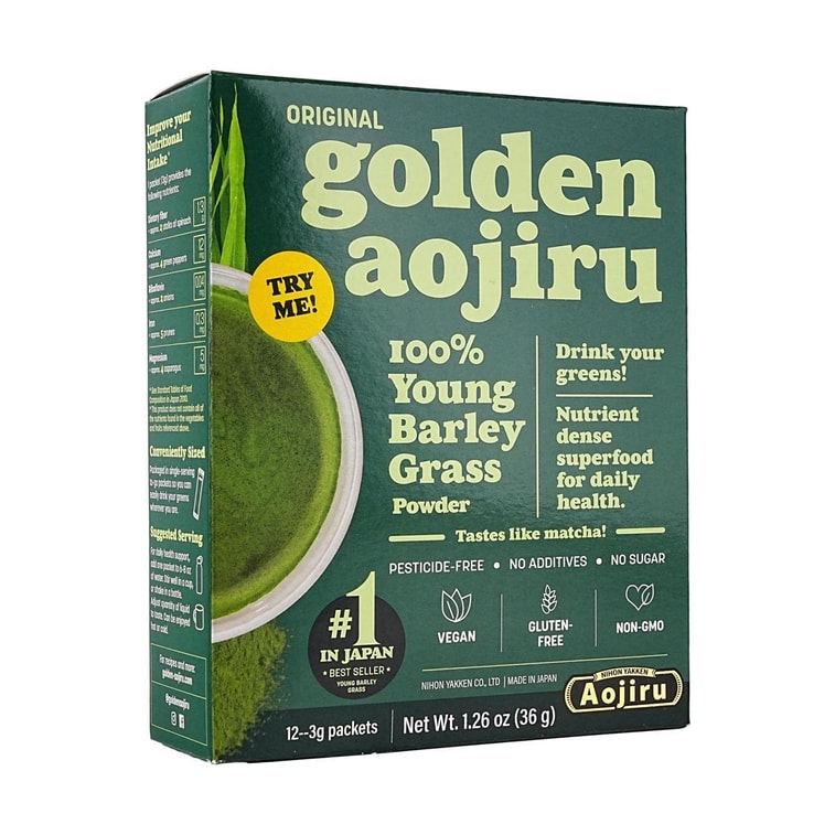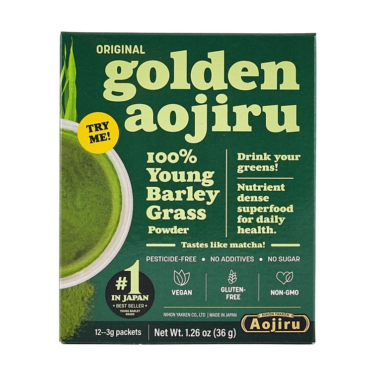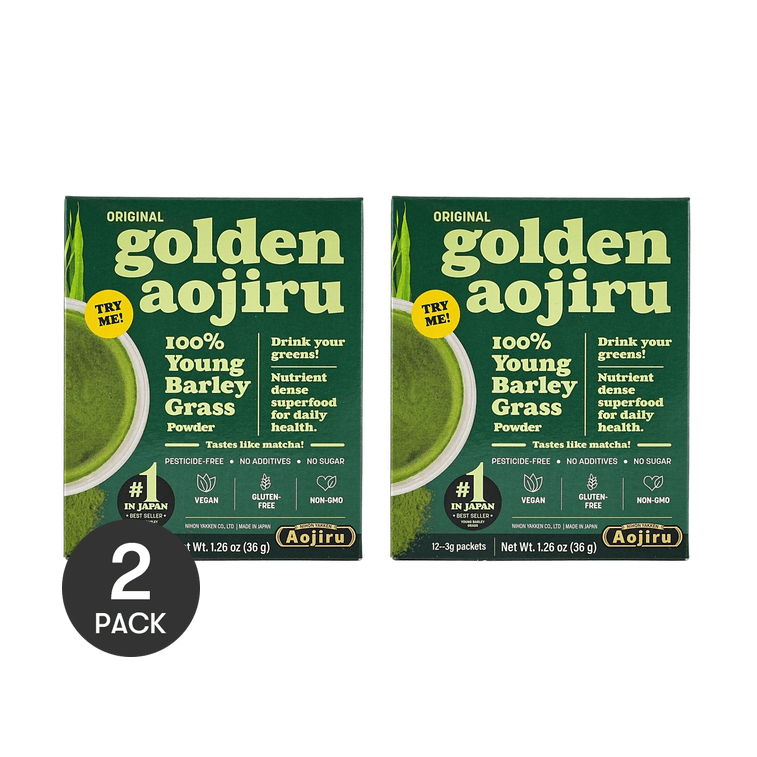 NIHONYAKKEN Golden Aojiru Original, Gold Blue Juice, 12 Bags*2, 100% Young Barley Grass, US Package【Value Pack】 | Yami