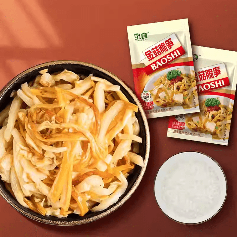 Golden Mushroom & Crispy Bamboo Shoots Pickle - Ready-to-Eat Side Dish (Enoki Mushroom) 70g x 3 Packs