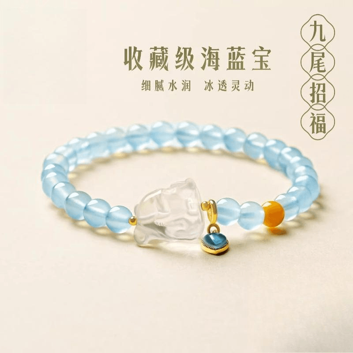 Gong Li's New Crystal Bracelet For Women, Natural Sea Blue Treasure Bracelet, Exquisite Nine Tailed Lucky Charm, 15cm | Yami