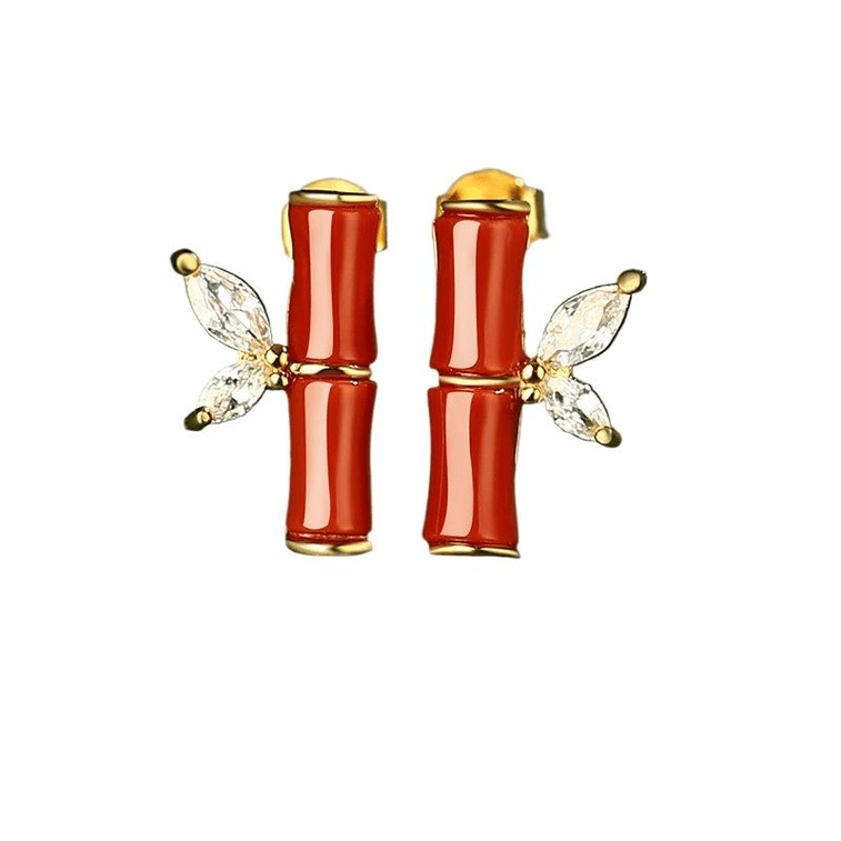 Gongli Shangxin Hotan Jade Earrings Hongzhu (South Red) Gem Grade Water Run Cherry Red South Red Agate 16 * 9.2mm