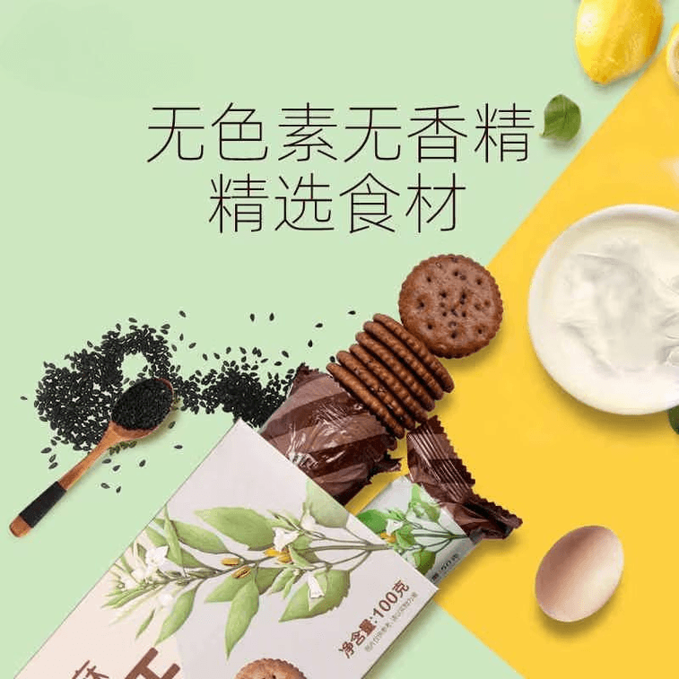 Green Food Black Sesame Calcium Milk Cookies 100g*1 Box