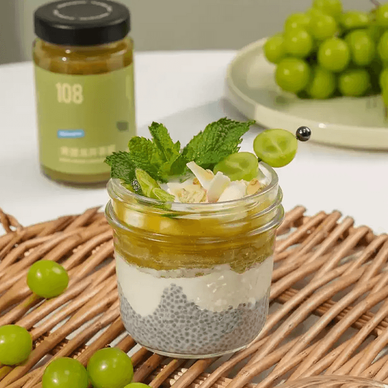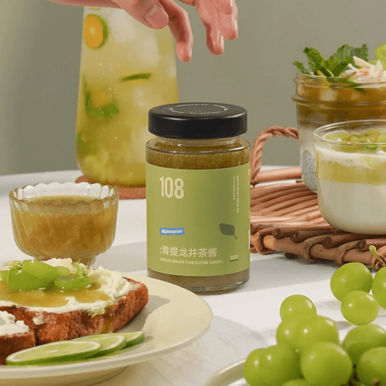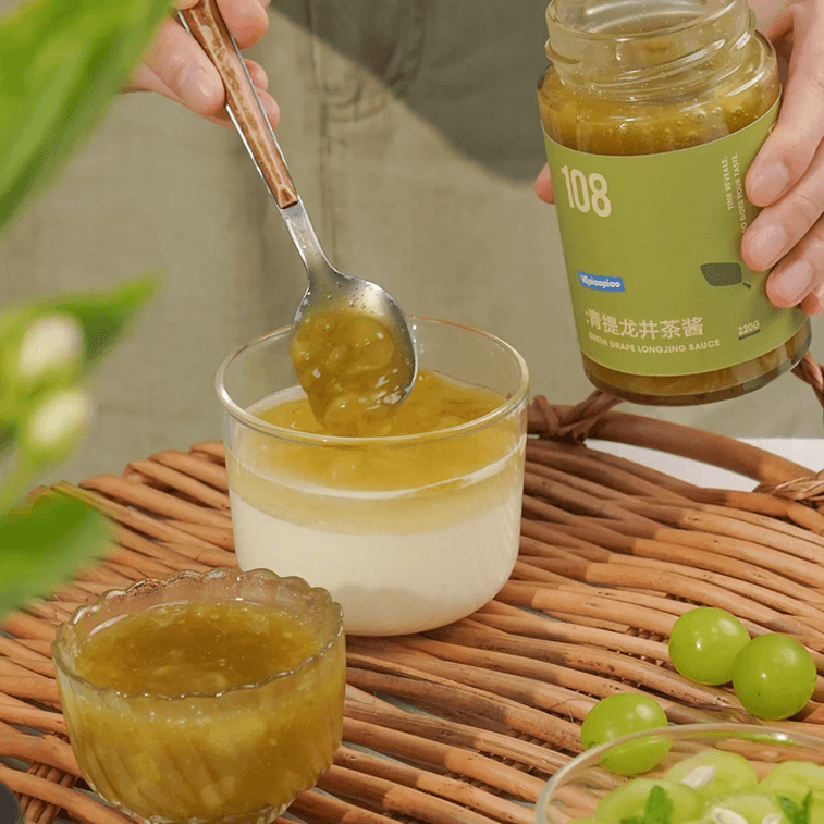VEpiaopiao Green Grape Longjing Tea Sauce, 7.76 oz 【Zero Fat, No White Sugar】【Suitable for Drinks, Toast Spread, and Baking】 | Yami