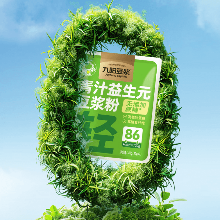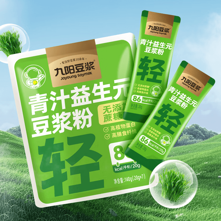 Joyoung Soymilk Green Juice with Probiotics Soy Milk Powder Stand-up Bag, 0.71oz*7 sachets | Yami