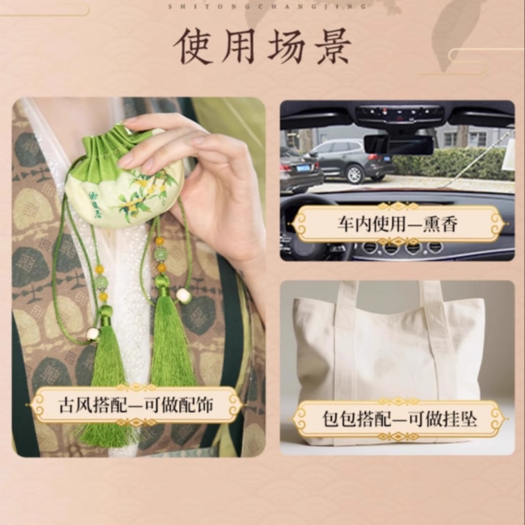 Green Osmanthus-Fragranced Hanging Pouch - Intangible Cultural Heritage Handmade 1 Piece